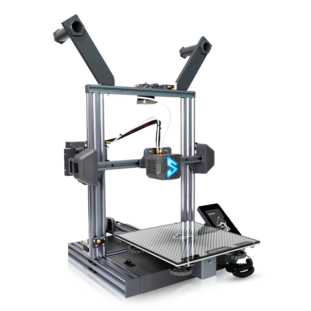 自從去年疫情以來(lái),3D打印機(jī)就熱銷(xiāo)歐美市場(chǎng),也讓更多的小白用戶(hù)加入到了3D打印愛(ài)好者的行列。用戶(hù)對(duì)桌面級(jí)的3D打印機(jī)也有了更多的要求,他們希望機(jī)器的功能可以更加豐富,比如實(shí)現(xiàn)雙色打印、激光雕刻等。作為SC-10 SHARK的升級(jí)款產(chǎn)品,SC-10 SHARK V2推向市場(chǎng)后,就獲得了用戶(hù)和測(cè)評(píng)網(wǎng)紅的廣泛認(rèn)可,數(shù)位網(wǎng)紅在測(cè)評(píng)這款機(jī)器后,評(píng)價(jià)這可能是今年的最好的多功能3D打印機(jī)。能夠收獲專(zhuān)業(yè)測(cè)評(píng)網(wǎng)紅的夸贊,SC-10 SHARK V2自然有它獨(dú)特的優(yōu)勢(shì)。這款機(jī)器在SC-10 SHARK的基礎(chǔ)上做了3大升級(jí):1、改善了激光雕刻的安裝方式,增大了激光雕刻的尺寸;2、升級(jí)了風(fēng)扇設(shè)計(jì)方案,扇熱效果更好;3、將可移動(dòng)觸摸屏的尺寸從原來(lái)的3.5寸升級(jí)成4.3寸,屏幕內(nèi)置驅(qū)動(dòng)芯片,屏幕響應(yīng)更加靈敏;這款機(jī)器具備以下優(yōu)勢(shì):模塊化三合一3D打印機(jī)支持單色打印、雙色打印、激光雕刻,可玩性更強(qiáng),能夠滿(mǎn)足用戶(hù)更多的打印需求。激光雕刻:激光雕刻功率為1.6 W,可以雕刻木材,皮革,紙張等材料雙色打印:支持使用兩臺(tái)擠出機(jī)和一個(gè)噴嘴進(jìn)行雙色打印可拓展自動(dòng)調(diào)平模塊機(jī)身預(yù)留自動(dòng)調(diào)平接口,可兼容3D Touch和BL Touch4.3寸手持觸摸屏可移動(dòng)手持觸摸屏,粗摸靈敏,操作靈活、簡(jiǎn)易磁吸熱床+鋼制打印平臺(tái)無(wú)需夾子固定,取模型更方便標(biāo)配5個(gè)TMC2208靜音驅(qū)動(dòng)打印過(guò)程噪音更小標(biāo)配明緯電源高品質(zhì)的品牌電源,確保打印安全、低故障采用STM32芯片性能更高、功耗更低支持8種語(yǔ)言UI操作系統(tǒng)支持8種語(yǔ)言。它們是英語(yǔ),德語(yǔ),法語(yǔ),意大利語(yǔ),西班牙語(yǔ),葡萄牙語(yǔ),日語(yǔ)和中文雙此輪金屬擠出機(jī)可以顯著提到擠出的穩(wěn)定性,提升打印速度,改善打印質(zhì)量斷料檢測(cè)以及斷料報(bào)警標(biāo)配斷料檢測(cè)功能,避免浪費(fèi)耗材和模型斷電續(xù)打和斷點(diǎn)續(xù)打同時(shí)支持?jǐn)嚯娎m(xù)打和斷點(diǎn)續(xù)打,以避免浪費(fèi)模型和打印時(shí)間機(jī)身采用陽(yáng)極氧化工藝機(jī)身色彩更有金屬質(zhì)感,機(jī)身外觀(guān)更漂亮機(jī)身...
